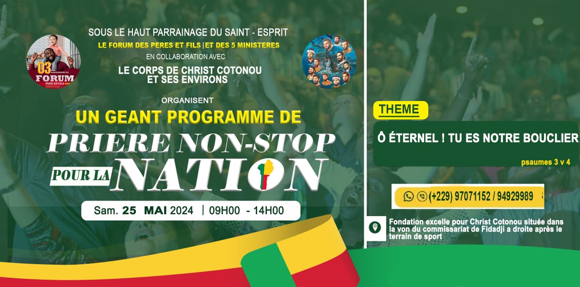 Au Bénin, les chrétiens évangéliques sont invités à un géant programme de prière pour la Nation samedi 25 mai à Cotonou. « Vous êtes inviLire la suite …