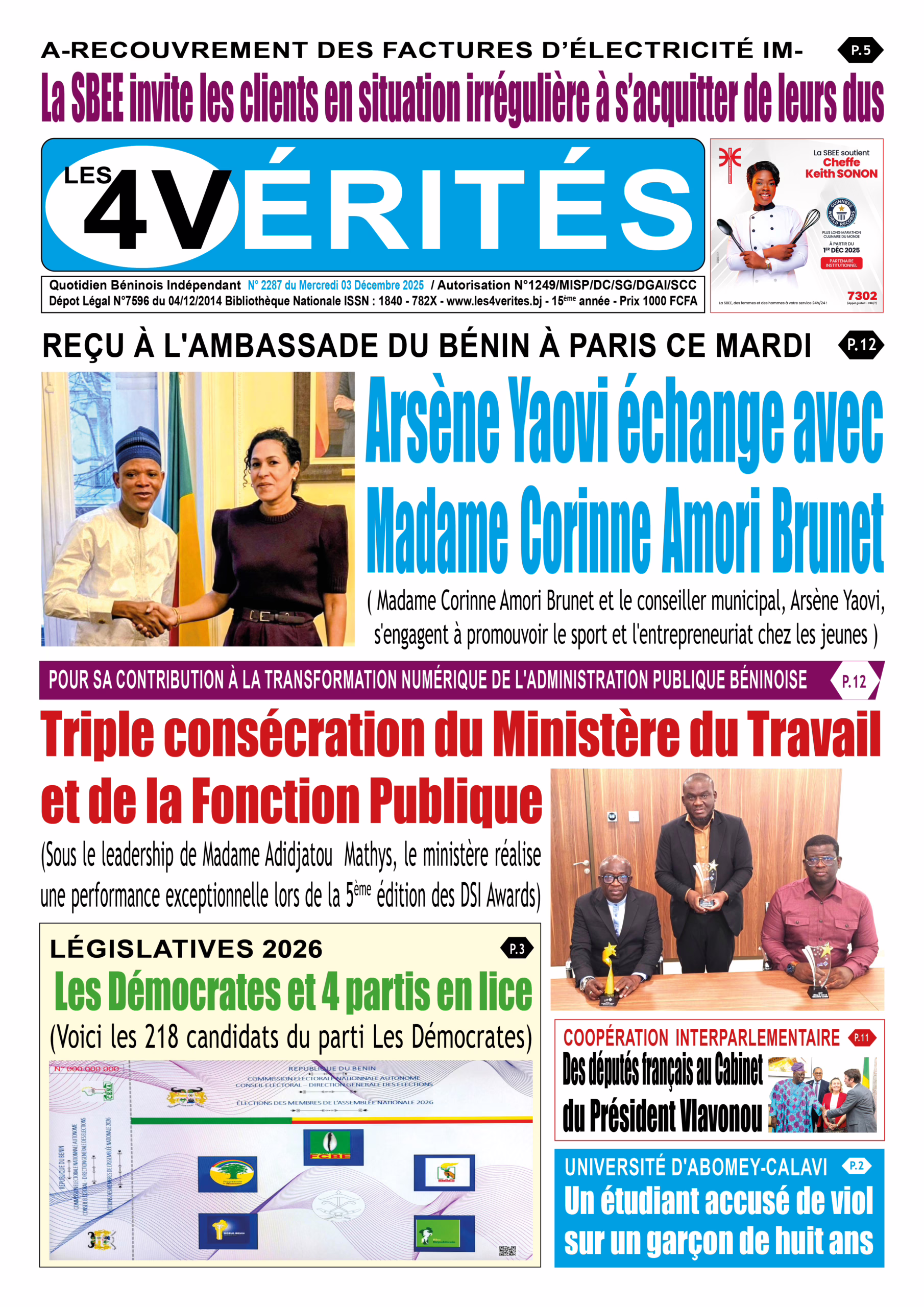 • Reçu à l'ambassade du Bénin à Paris ce mardi : Arsène Yaovi échange avec Madame Corinne Amori Brunet