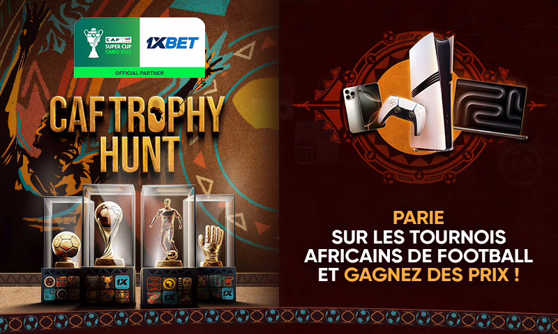 Spécialement pour cette période chargée de la saison, 1xBet a lancé une grande promotion « CAF Trophy Hunt », où vous pourrez soutenir vos équipes africaines préférées et tenter d’empocher de précieux cadeaux : un iPhone 16 Pro Max, une PlayStation 5 Pro avec EA SPORTS FC 25, un MacBook Pro, un iPad Air 11 et bien plus encore.