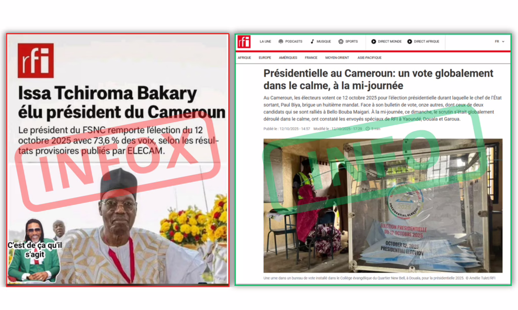 La rumeur s’est répandue quelques heures seulement après la fermeture des bureaux de vote au Cameroun. D’après plusieurs captures d’écran mensongères diffusées sur WhatsApp, TikTok et Instagram, RFI aurait d’ores et déjà publié un article sur le vainqueur de ce scrutin. Il s’agit en réalité d’une fausse information, puisqu’on ne connaît pas, à ce stade, les résultats du vote.