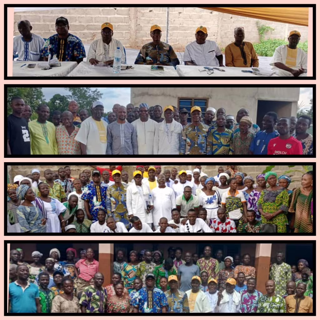 Pendant deux jours, l’imposante délégation est allée au contact des membres des cellules de base du parti dans les villages de l’arrondissement. Ladite délégation est composée du CA Joseph ZIMAZI, du DA Caliste SOSSOU, de l’Honorable Benoît SAKOU, du PA Honoraire Rigobert KOUMONDJI, du CA Honoraire Michel FANGNIGBE, de Messieurs Daniel HOUNSOULIN, Bernard HOUNTONDJI, Julien TCHEKE, David TCHIDI, François AMETONOU, des Chefs de Villages et des Conseillers locaux . L’objectif affiché est clair : renforcer la cohésion, écouter les préoccupations de la base et rappeler les grandes orientations du parti.