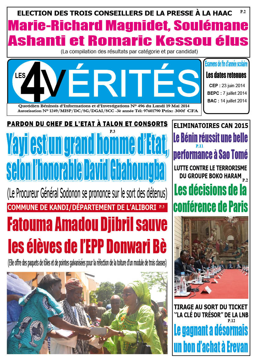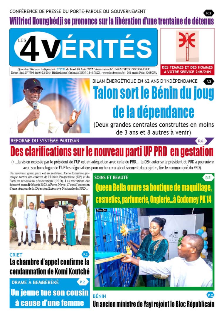 La Une de l’édition du jeudi 5 janvier 2023 du journal Les 4 Vérités