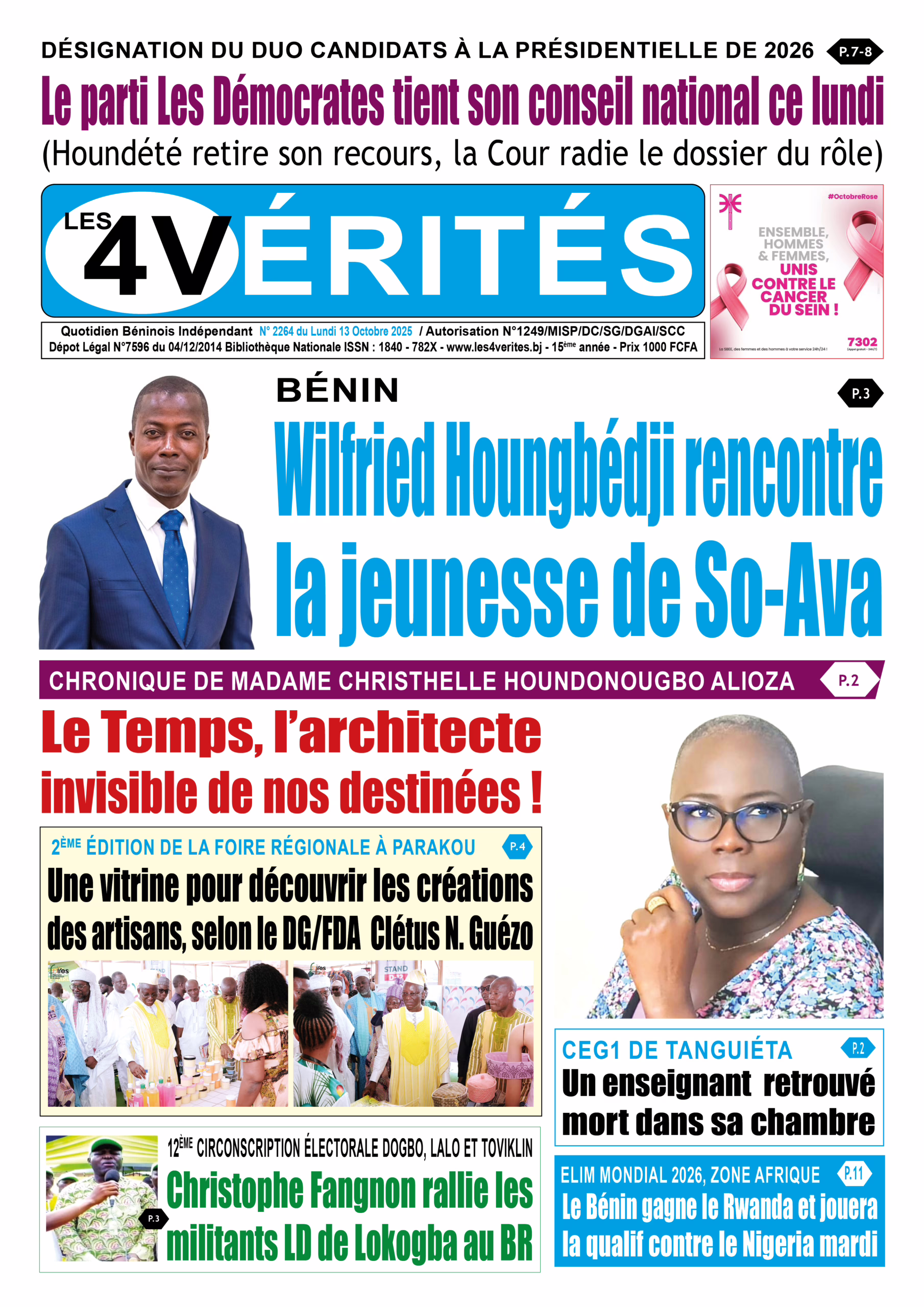 La Une de Les 4 Vérités du lundi 13 octobre 2025