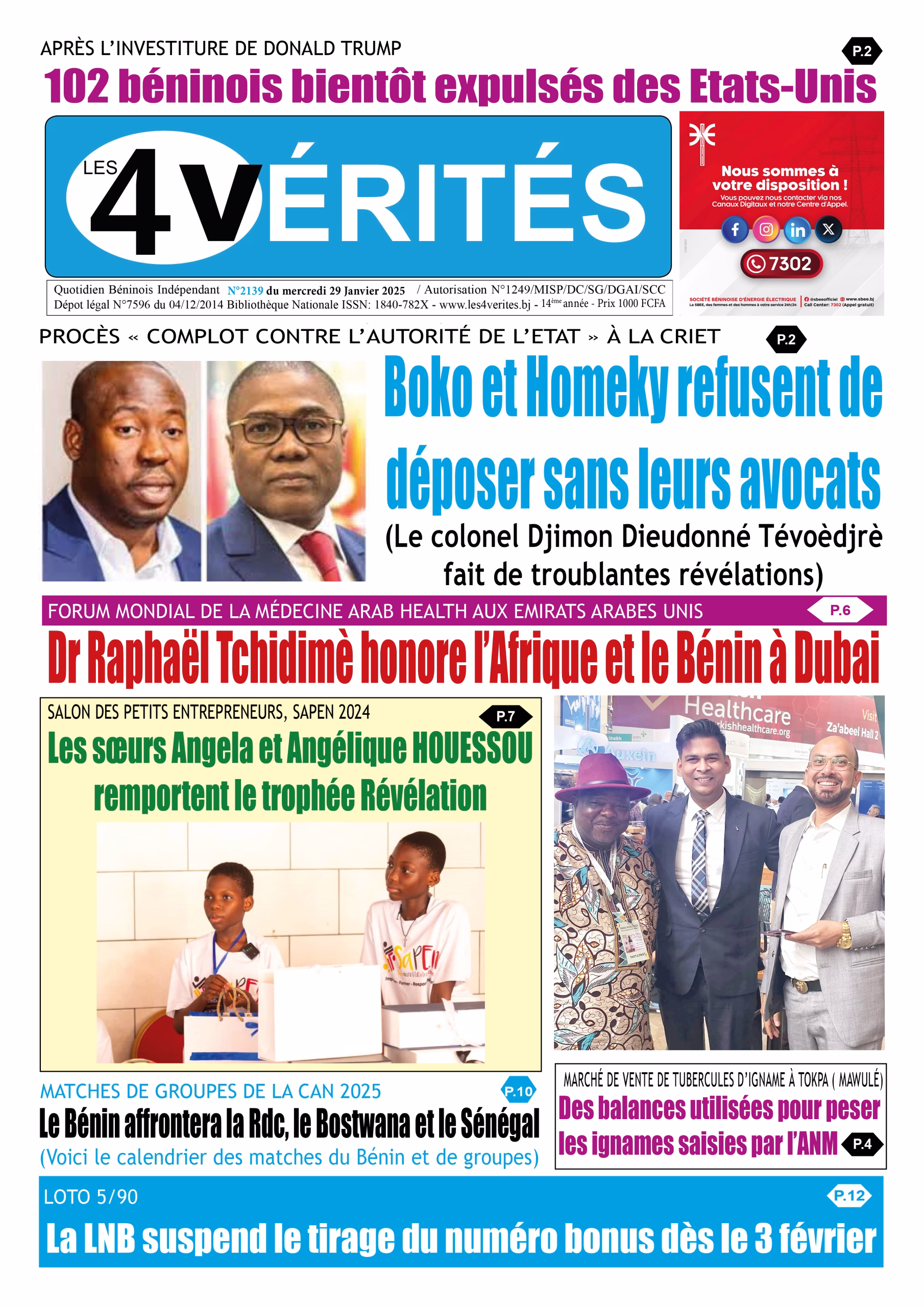 La Une de Les 4 Vérités du mercredi 29 janvier 2025