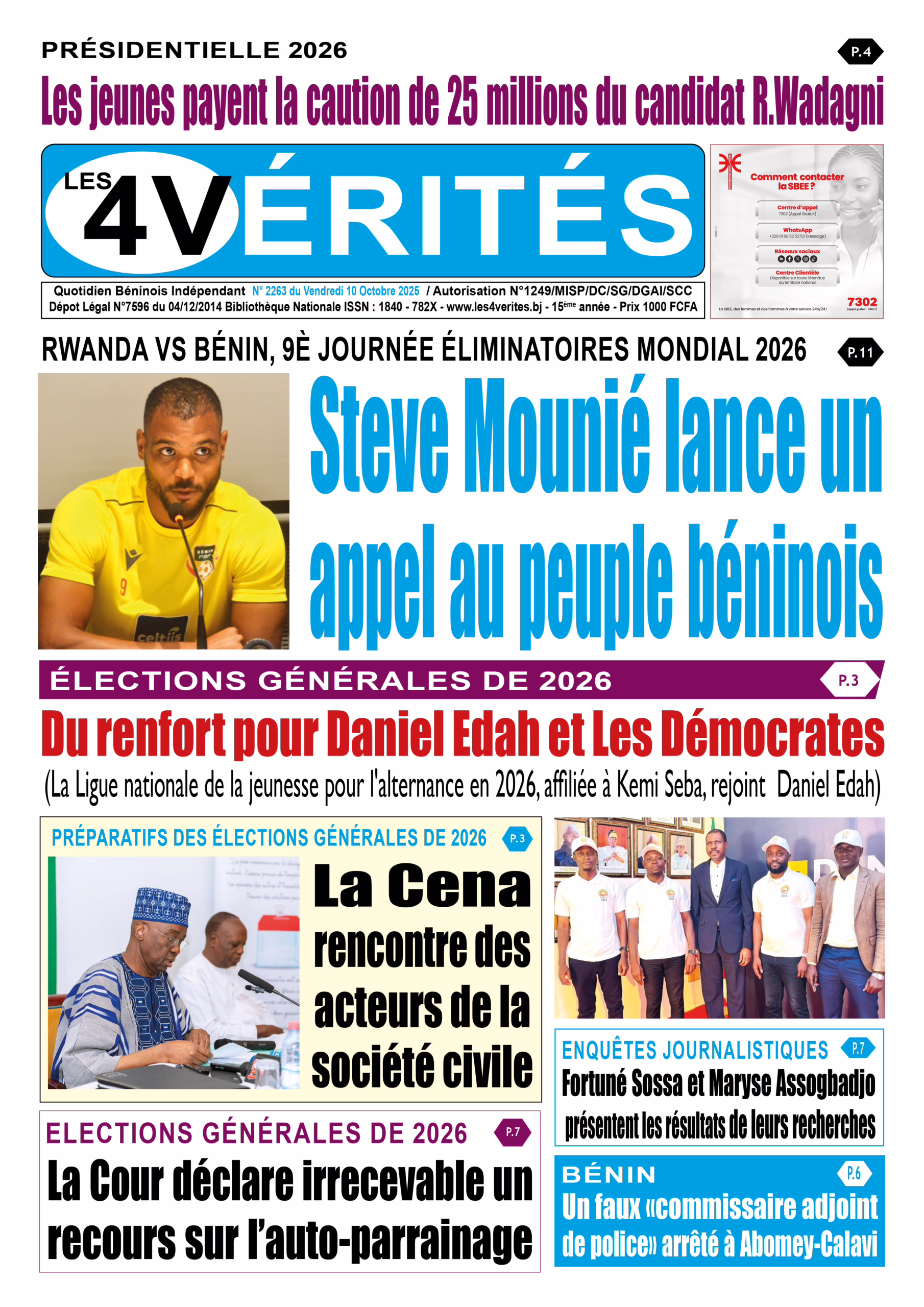 La Une de Les 4 Vérités du vendredi 10 octobre 2025