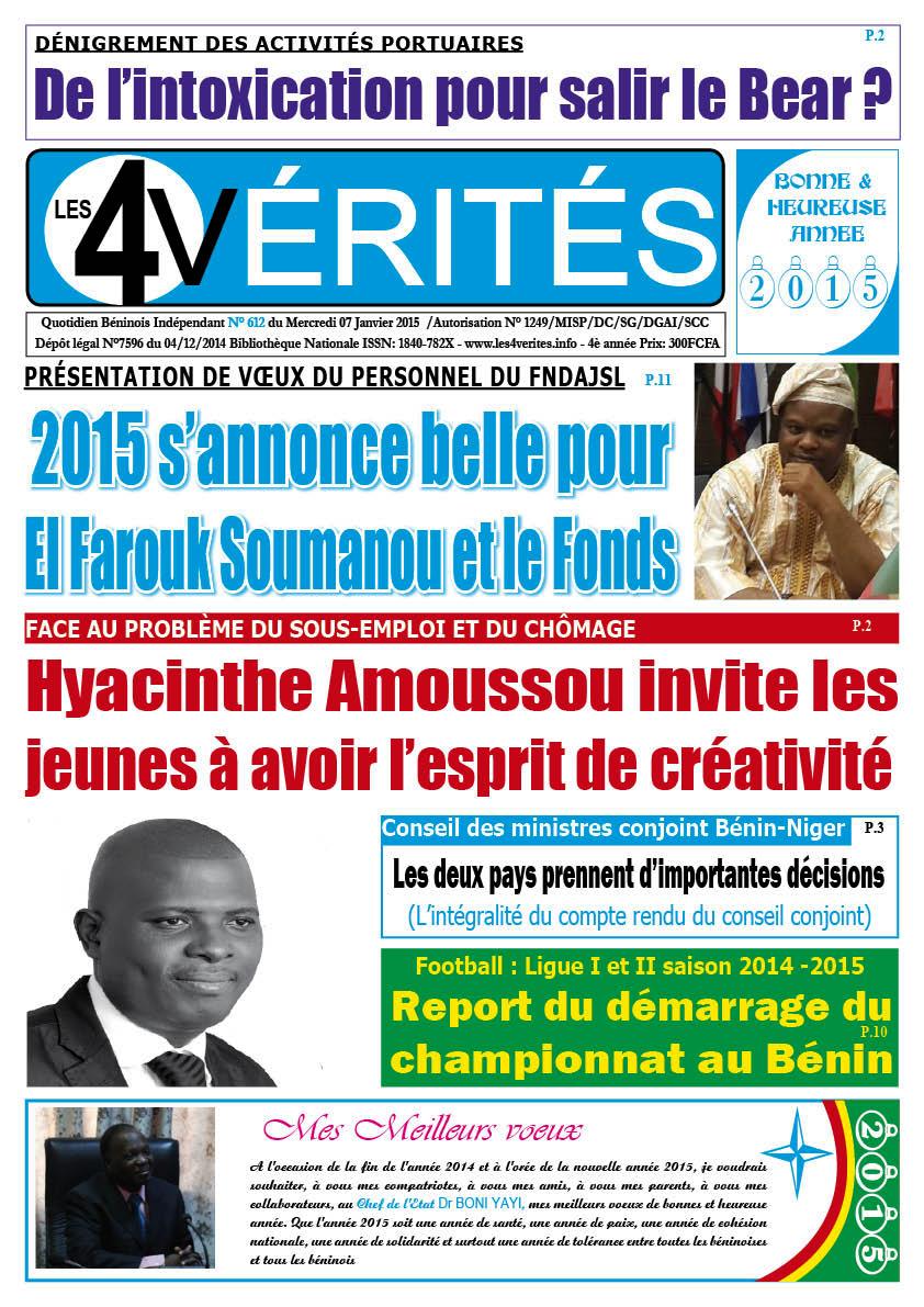 Bénin : Journal Les 4 Vérités, la Une de l’édition du mercredi 18 janvier 2023
