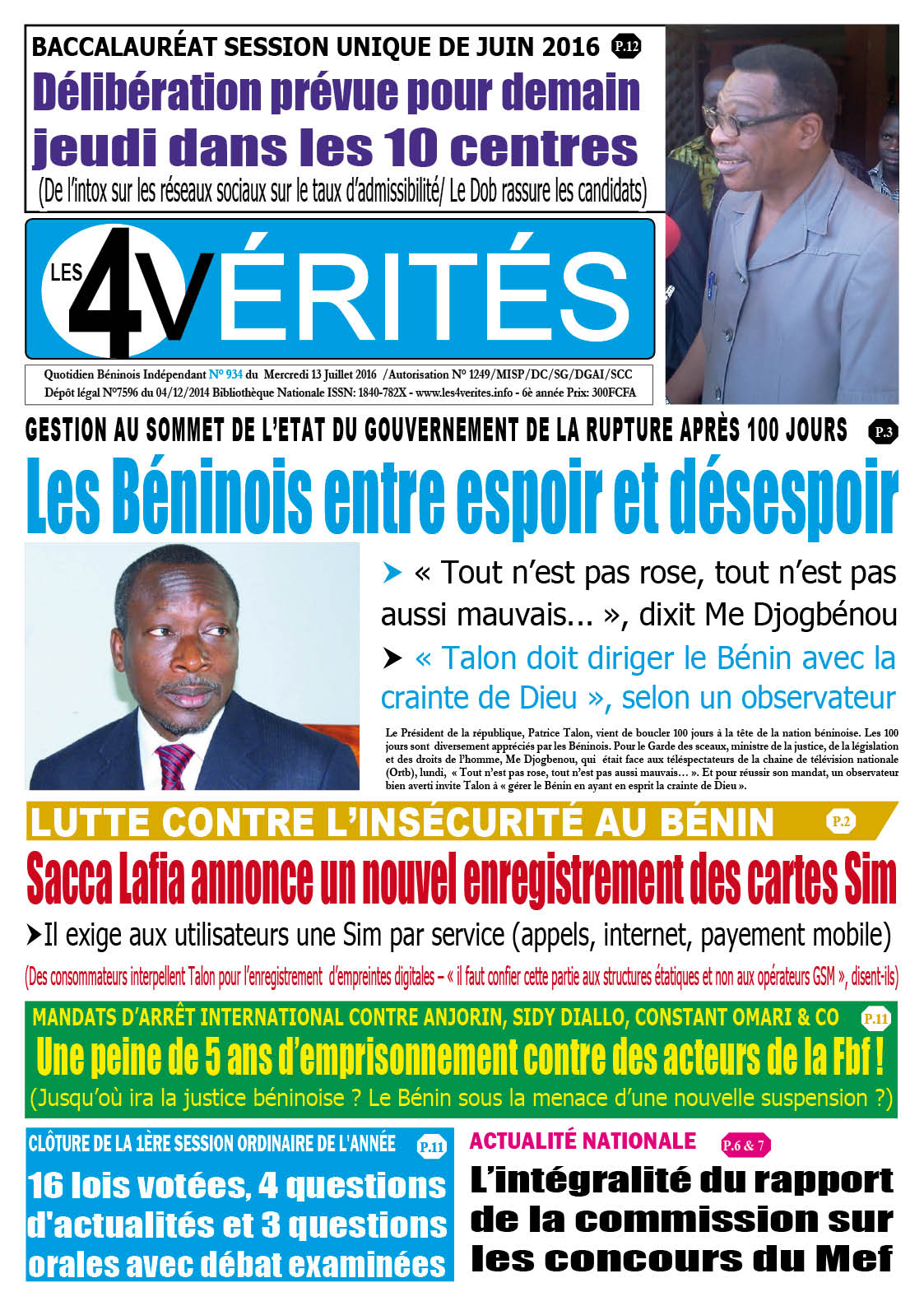 LA UNE DU VENDREDI 10 NOVEMBRE 2017