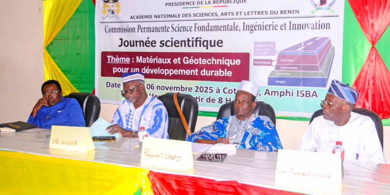 La Commission permanente Sciences Fondamentales, Ingénierie et Innovation de l’Académie Nationale des Sciences Arts et Lettres du Bénin (Anslab) a organisé ce 6 novembre 2025 une journée scientifique placée sous le thème « Matériaux et géotechnique pour un développement durable ». L’événement a rassemblé des experts du domaine, notamment des cadres techniques, chercheurs et ingénieurs des Bâtiments et … Lire la suite de Journée Scientifique sur les matériaux et la géotechnique pour un développement durable : L’Ansalb nourrit la volonté de fédérer les différents acteurs du secteur au Bénin
