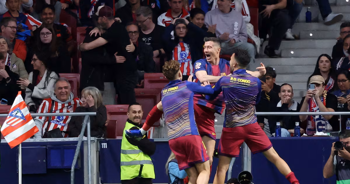 L’Atlético a ouvert la marque par Giuliano Simeone (39e) avant de se faire rejoindre à la suite d’un exploit de Marcus Rashford (42e) et d’être réduit à dix après l’expulsion de Nico Gonzalez avant la pause. Peu de temps après son entrée, Robert Lewandowski (87e) a donné la victoire au leader du championnat (76 points), qui compte désormais sept points d’avance sur le Real Madrid (2e, 69 pts).