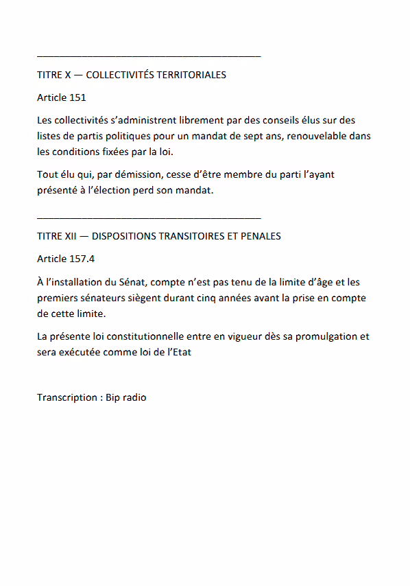 Au Bénin, les députés béninois ont adopté, aux premières heures du samedi 15 novembre 2025, la loi fondamentale portant révision de la Constitution. A travers cette révision, plusieurs modifications majeures ont été introduites. Voici la lecture du rapport de la Commission des lois , à l’Assemblée nationale, avant le vote. Lire l’intégralité du texte modifié, tel que lu par le rapporteur de la Commission et transcrit par Bip radio.